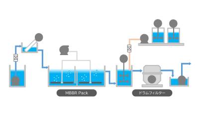 処理水質:BOD15mg/L以下(MBBR Pack+凝集+ろ過)